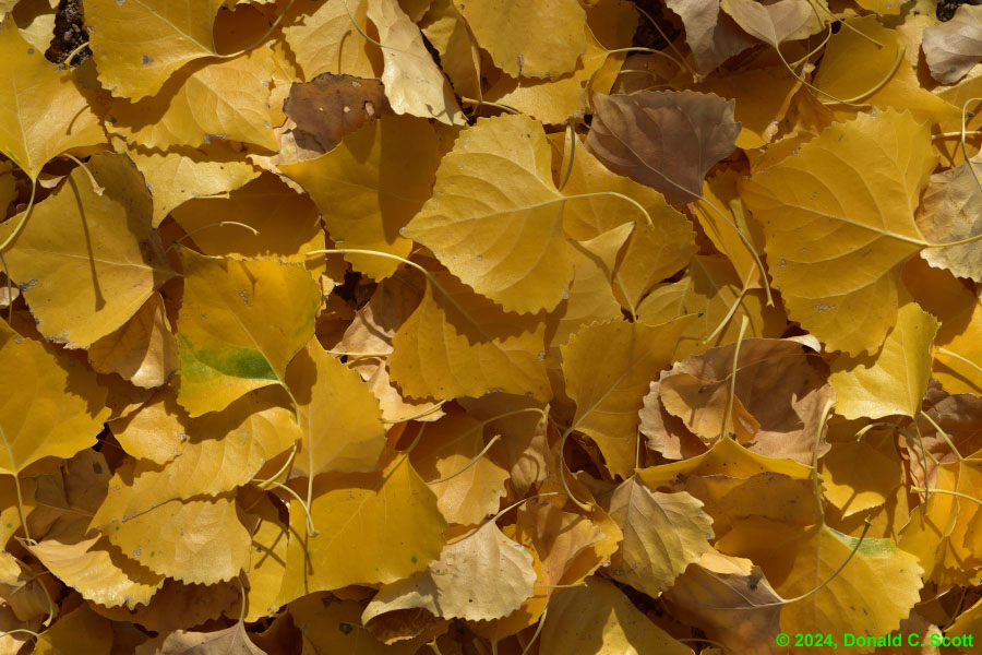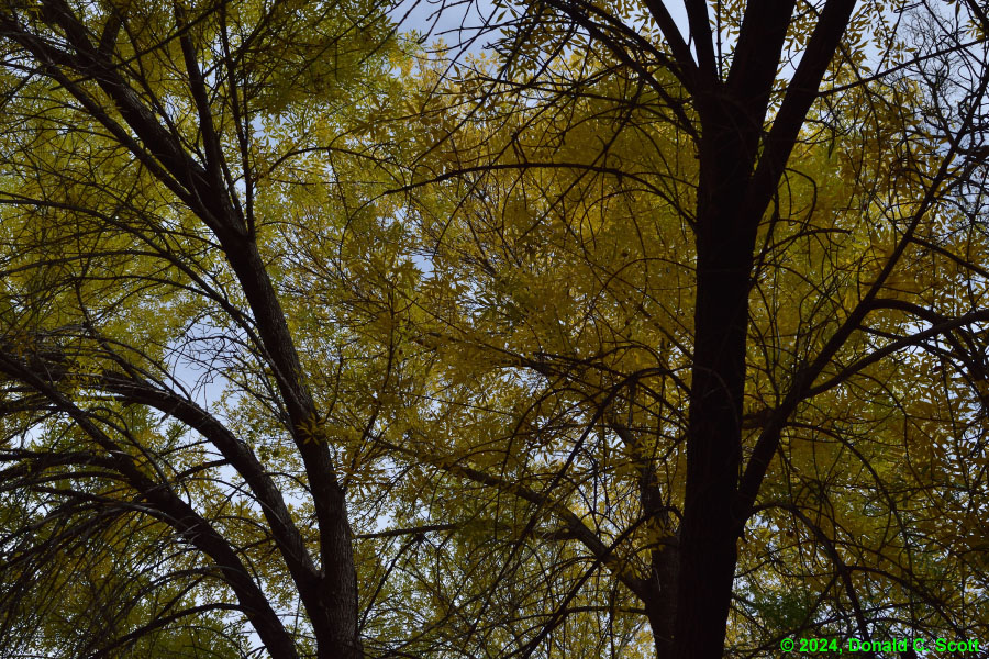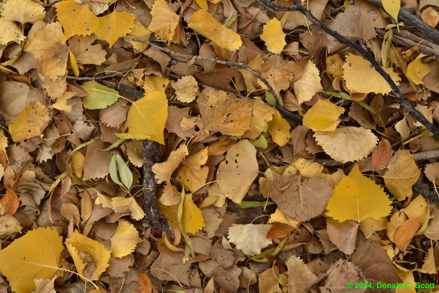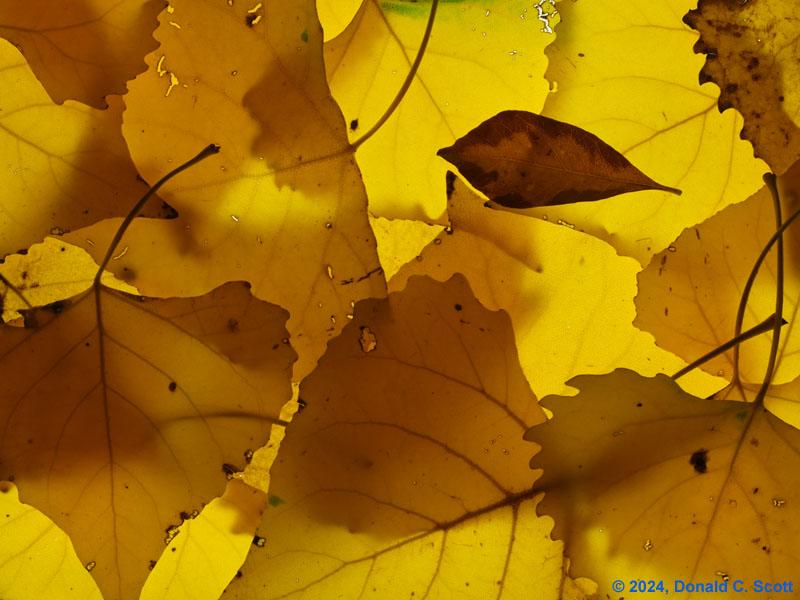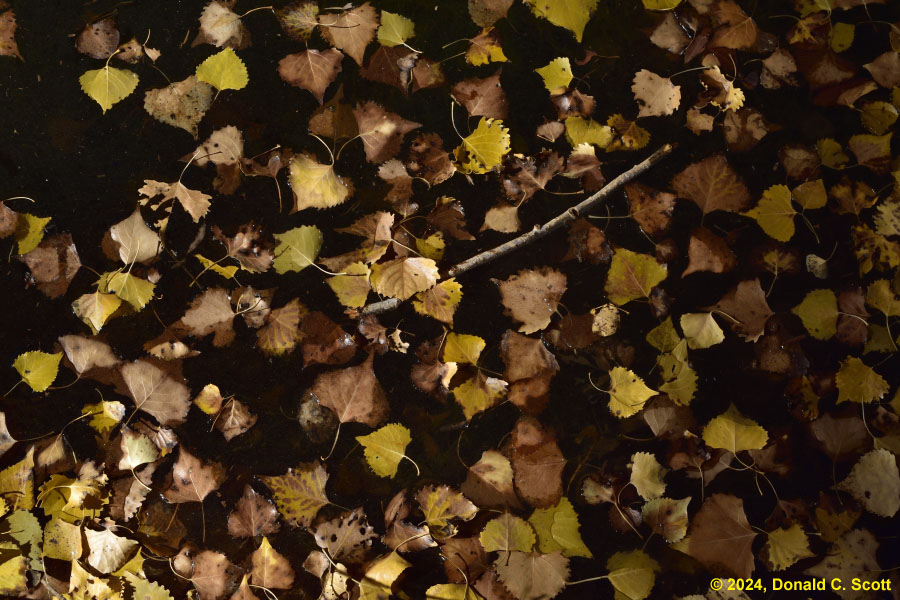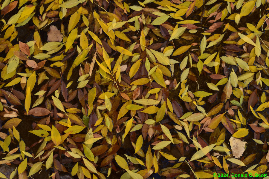 This past fall there were alternating periods of warm and cold weather. Perhaps as a result, the timing of leaf color changes at the creek seemed a bit uncoordinated, with some tree’s leaves turning yellow and dropping, while other nearby trees of the same variety remained green. Regardless of the timing, it was nice standing amongst the trees when the leaves were floating down.
